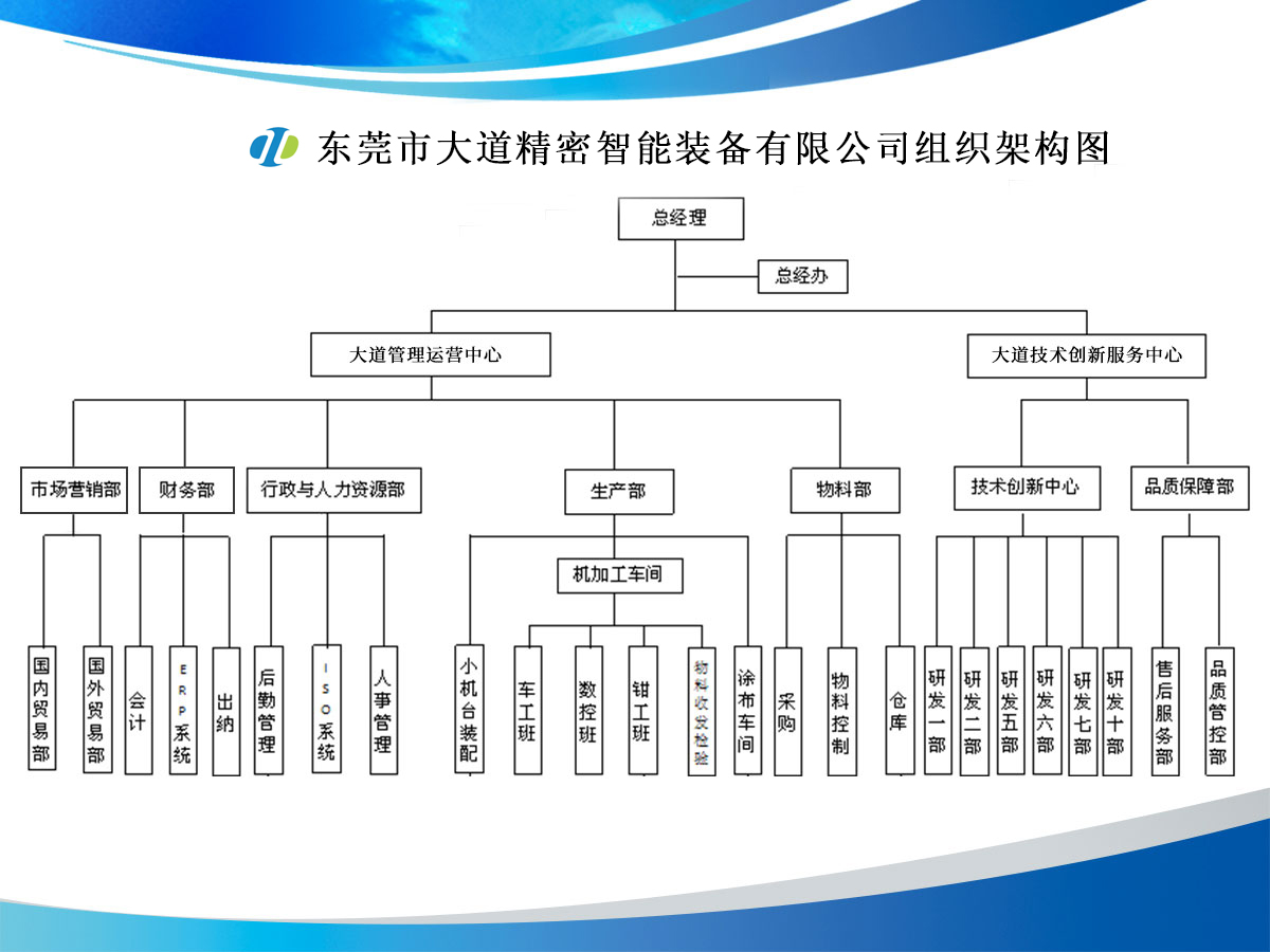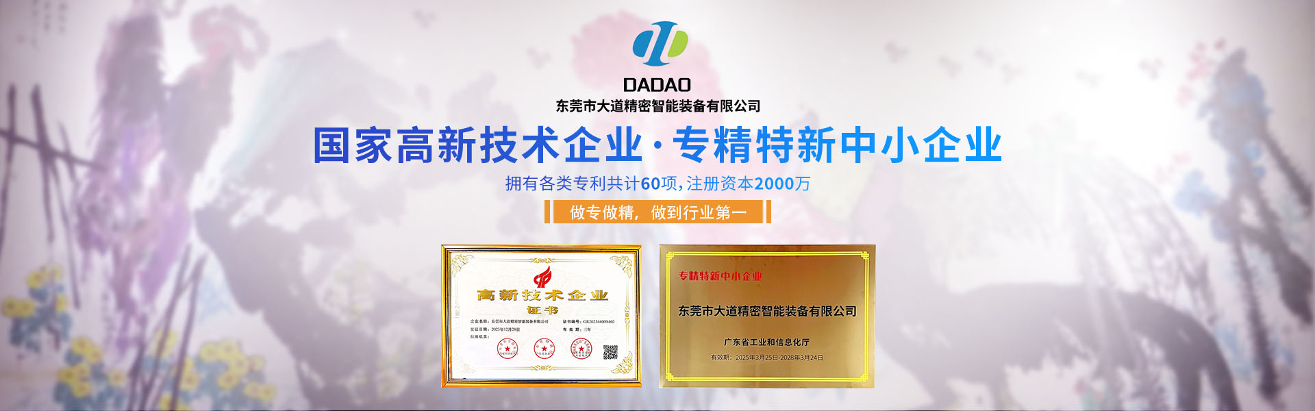大道精密成立于2019年,公司注冊資本1000萬元,擁有辦公室、廠房等18,000多平方米。已通過ISO9001:2015國際質量管理體系認證,擁有國家各類專利共計58項,獲得“中國大道.商標”和“一帶一路十周年 .國禮品牌”等榮譽稱號,屬于國家高新技術企業(yè),專精特新中小企業(yè)。2023年4月成立了“東莞市大道精密智能裝備有限公司關心下一代工作委員會”,是東莞市企石鎮(zhèn)工商聯(lián)副會長單位、東莞市企石鎮(zhèn)文學藝術界聯(lián)合會副主席單位、東莞市環(huán)保包裝行業(yè)協(xié)會副會長單位、東莞市數控裝備行業(yè)協(xié)會第二屆會長單位、廣東省包裝技術協(xié)會常務理事單位、廣東省膠粘劑行業(yè)協(xié)會理事單位、國家標準《機械安全中安全防護授權系統(tǒng)的基本要求》起草單位。